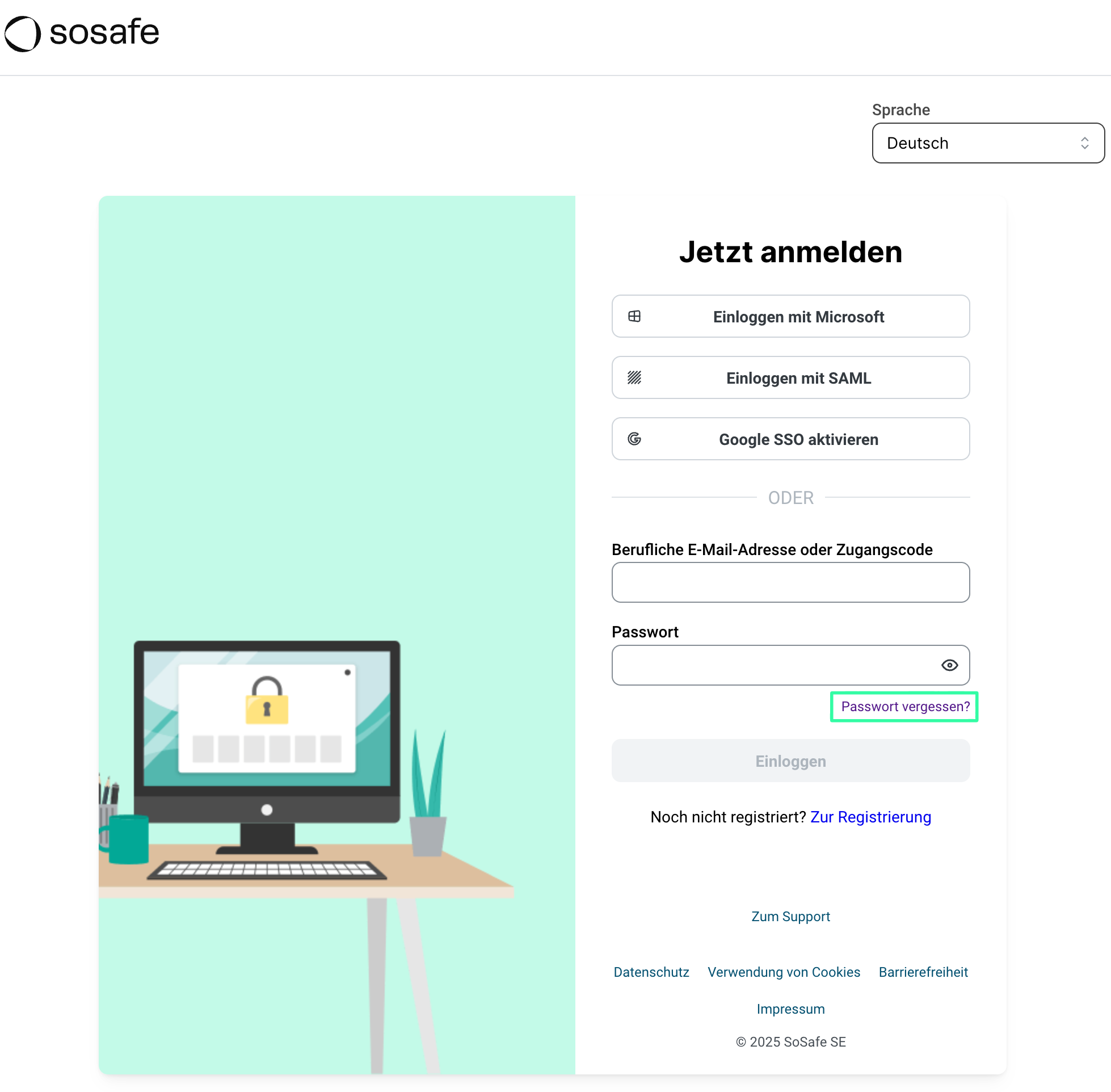 Die Nutzer können auch über diesen Link die Seite Passwort vergessen? öffnen.